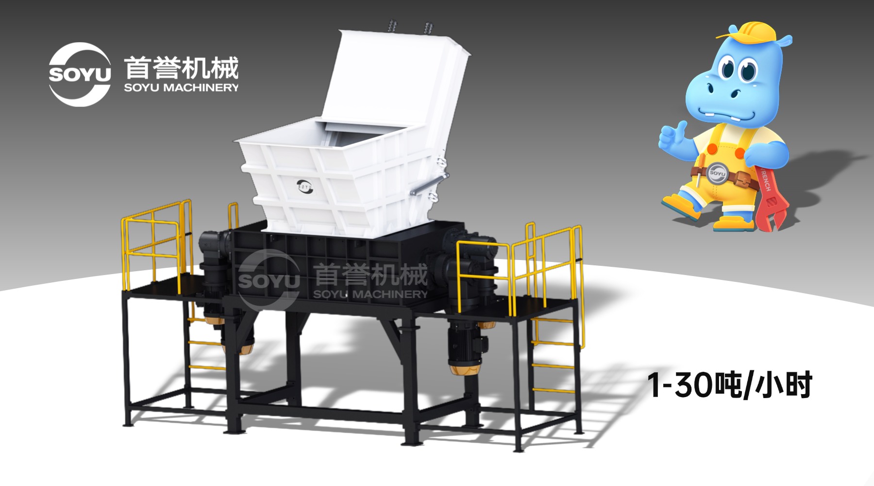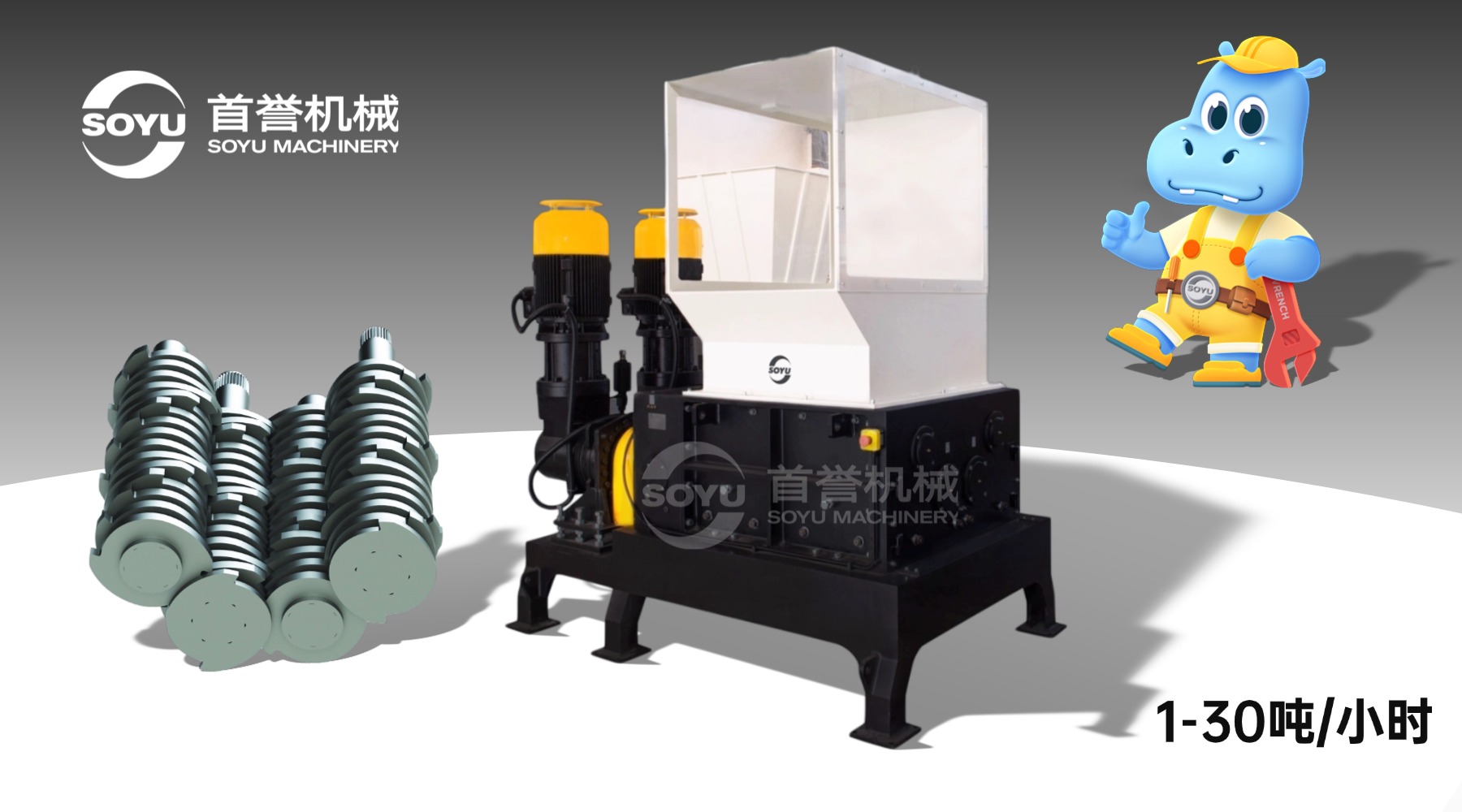 其次,要关注设备的稳定性和耐用性。首誉四轴撕碎机在设计和制造过程中,注重设备的稳定性和耐用性,采用了优质的材料和先进的工艺,能够保证设备长期稳定运行。此外,售后服务也是一个重要的因素。首誉机械拥有专业的售后服务团队,能够及时响应设备故障问题,提供高效解决方案,执行 一年保修 + 终生维护 的政策,让客户无后顾之忧。