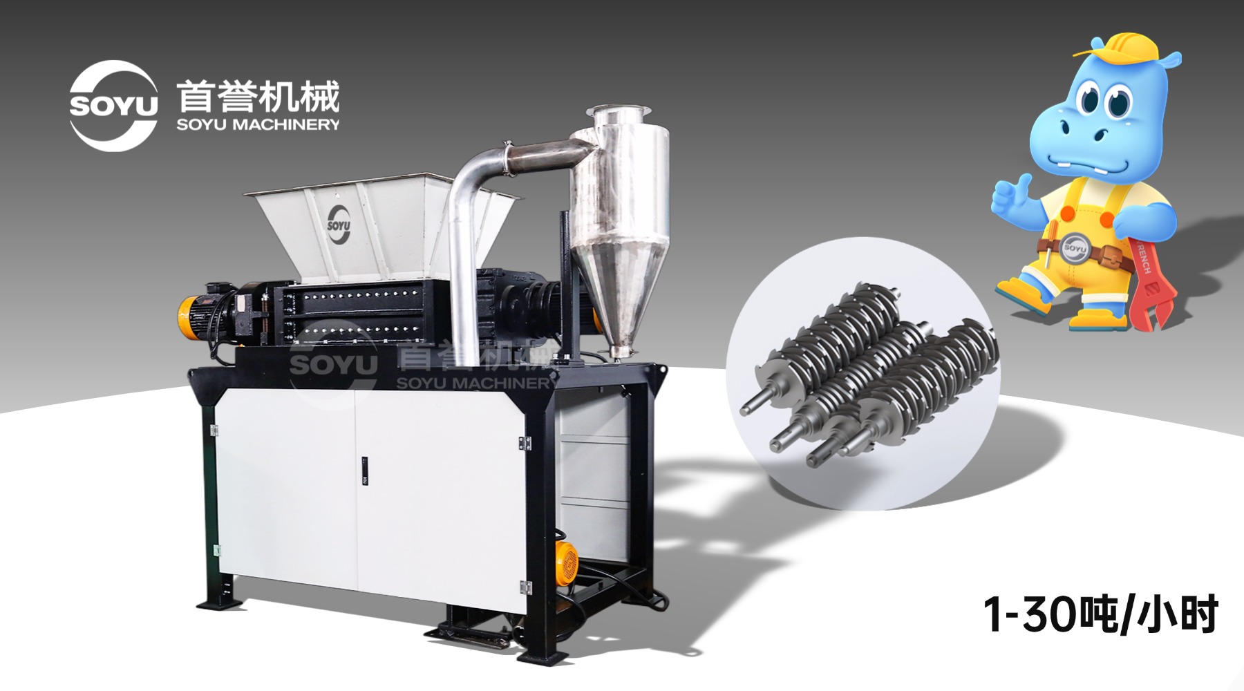 对于企业来说,设备的性价比是一个重要的考量因素。首誉四轴撕碎机在价格和性能之间找到了很好的平衡。在节能方面,行星减速机驱动,低转速大转矩,同产能能耗较行业低 18%,密封腔体 + 脉冲除尘,粉尘≤10mg/m³,年省电费超 3 万元。在维护成本上,模块化设计、零部件互换性好;对开式轴承座 + 液压翻板门,换刀与清异物快;筛网分段更换,刀具可修复翻新,运维时间减 70%,年耗材成本降 40%。